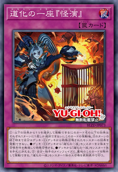 ②:雙方主要階段,將墓地此卡除外可以發動。將「道化の一座」怪獸1體表側表示A召喚