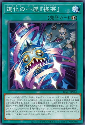 ①:牌組˙EX牌組「道化の一座」怪獸最多2體無視條件特殊召喚。此卡發動後,到下回合結束為止我方不能將牌組˙EX牌組特殊召喚的怪獸效果發動